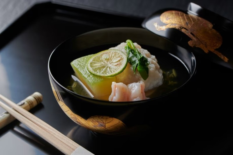 Dinner is themed around “nutritious seasonal cuisine”, highlighting fresh local vegetables in a beautifully arranged kaiseki menu.