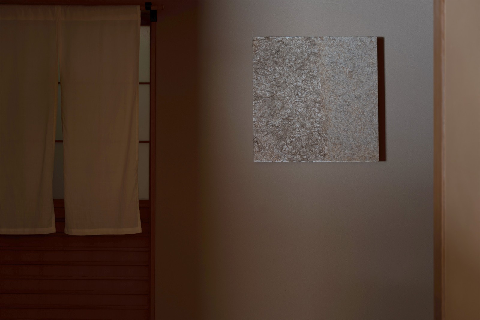 自然素材の持つ力強さと繊細さをそのまま紙へと昇華させた作品は、素材そのものが語りかけるような力を湛えています。