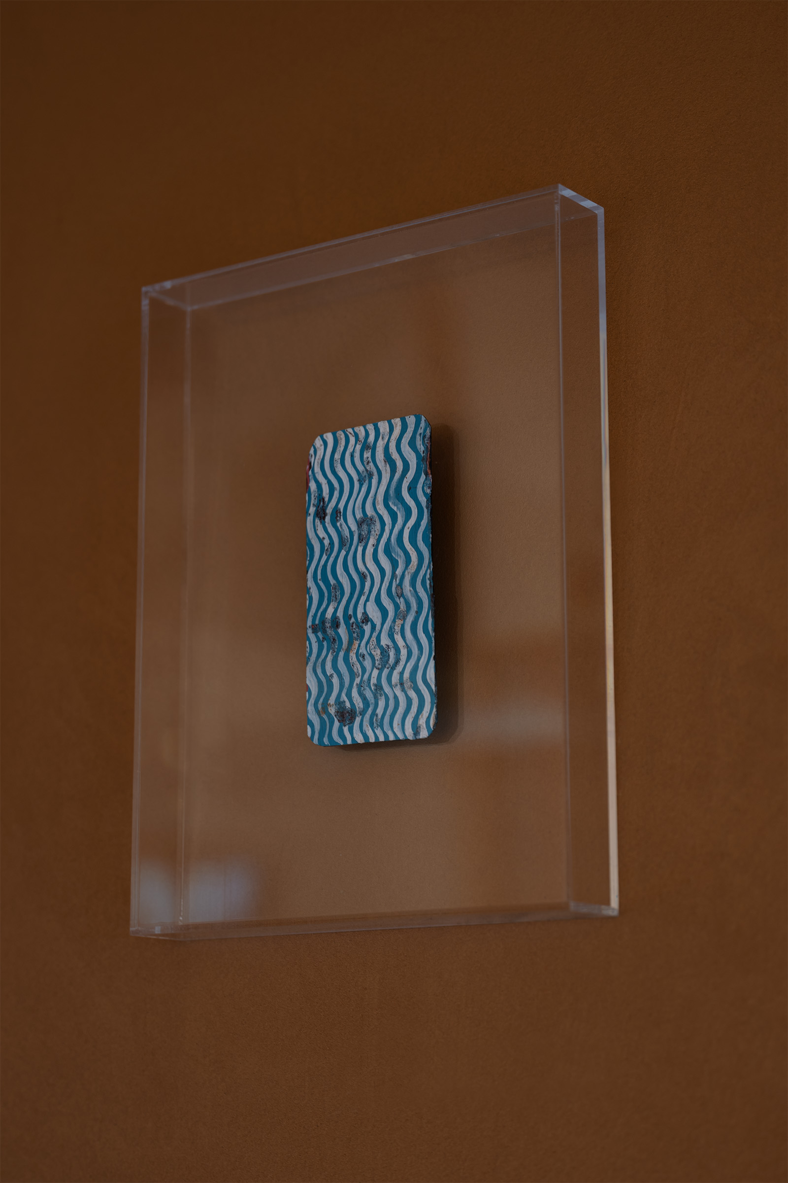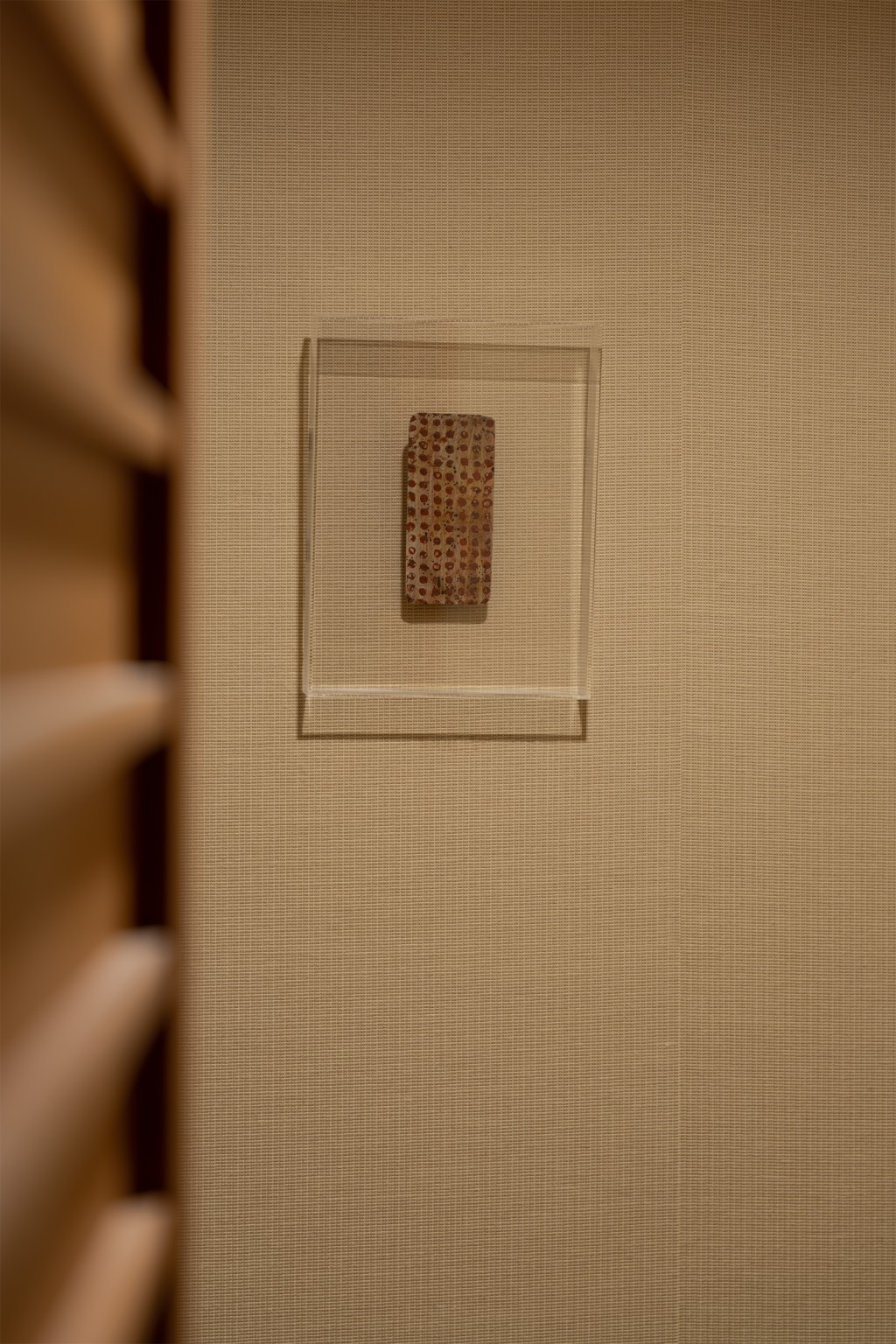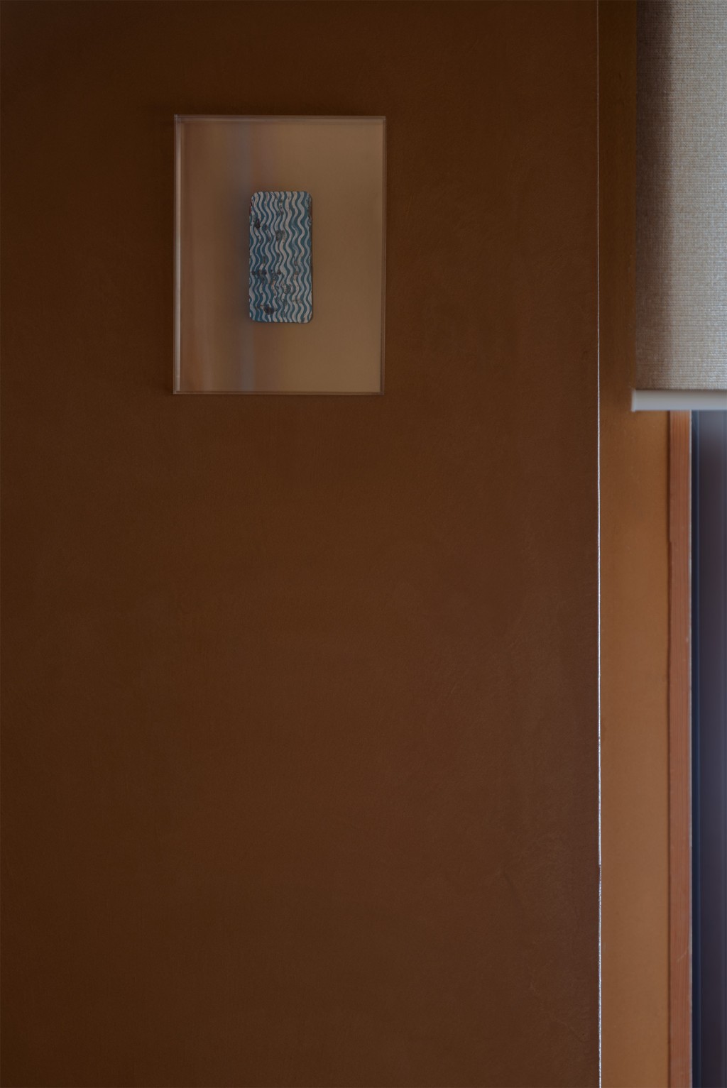 その背景にある祈りの時間と、抑制された造形の美しさに深く共鳴し、華野のラウンジ、そして人目を避けた手洗い空間という静かな場所に展示することを選びました。