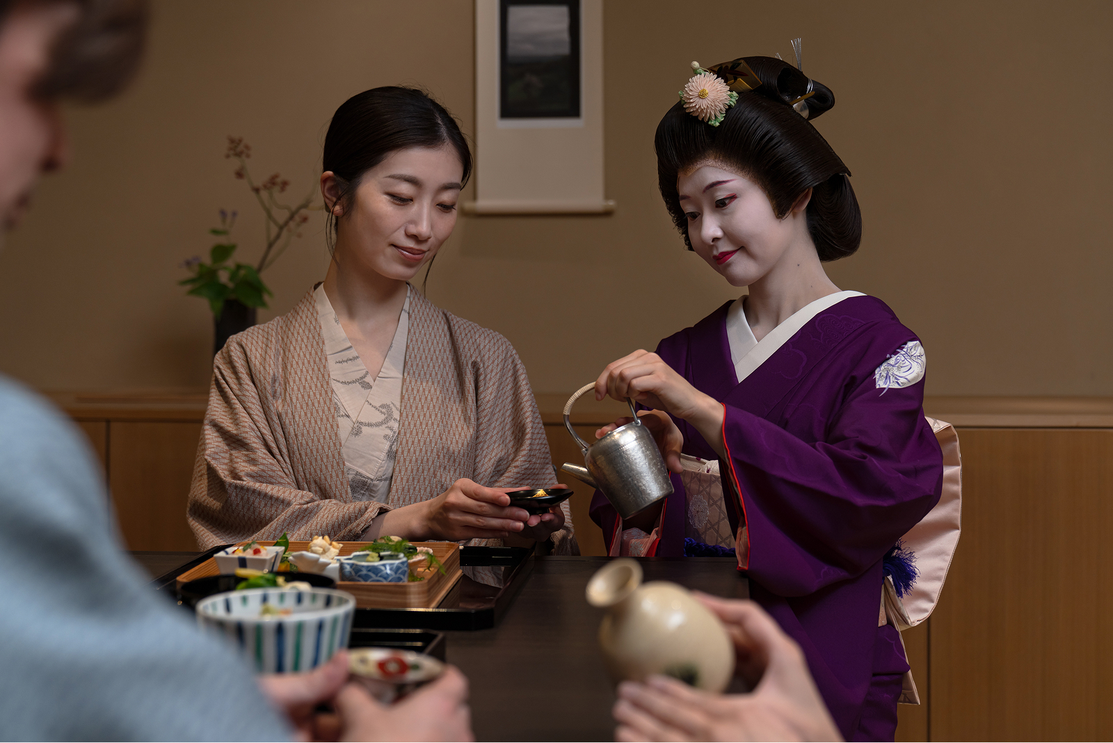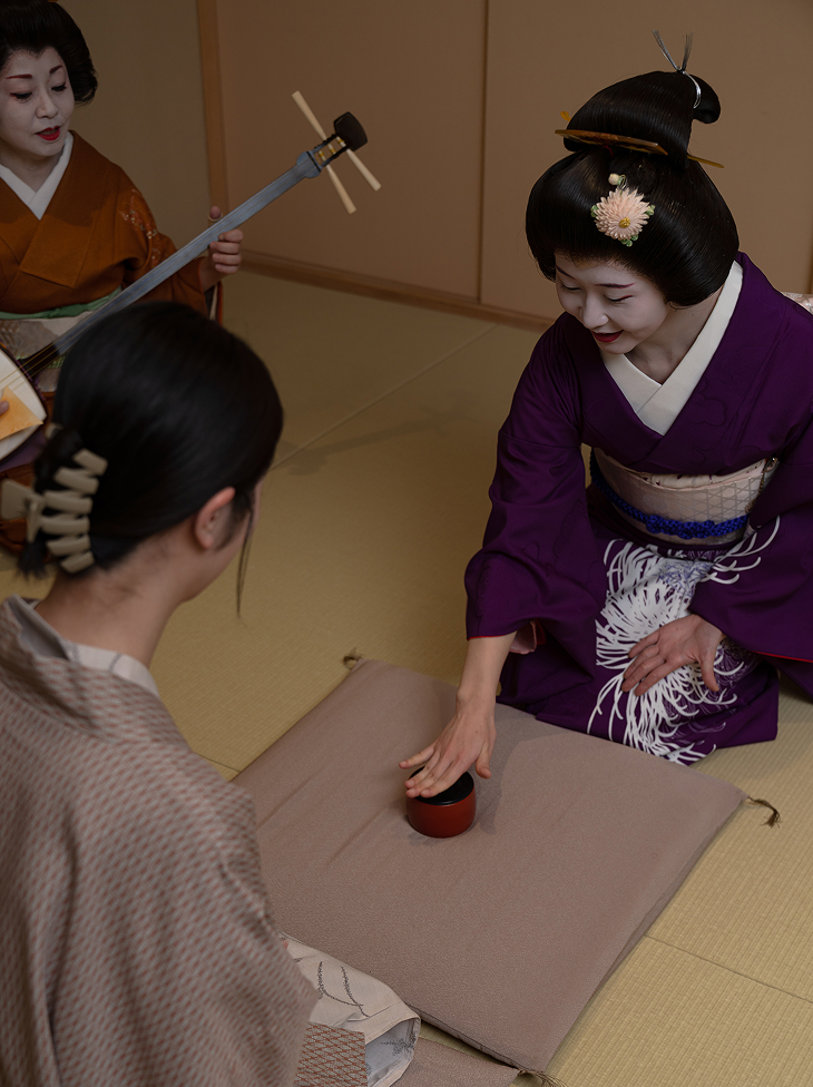 게이코의 몸짓에 깃든 전통이 여행의 추억을 더욱 깊이 있게 만들어 줍니다.