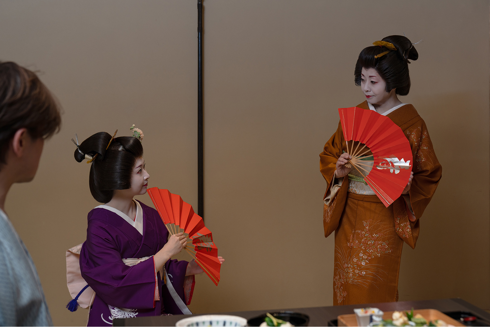 식사 후에는 부채와 소고를 사용한 전통 게이코 놀이를 체험하실 수 있습니다.