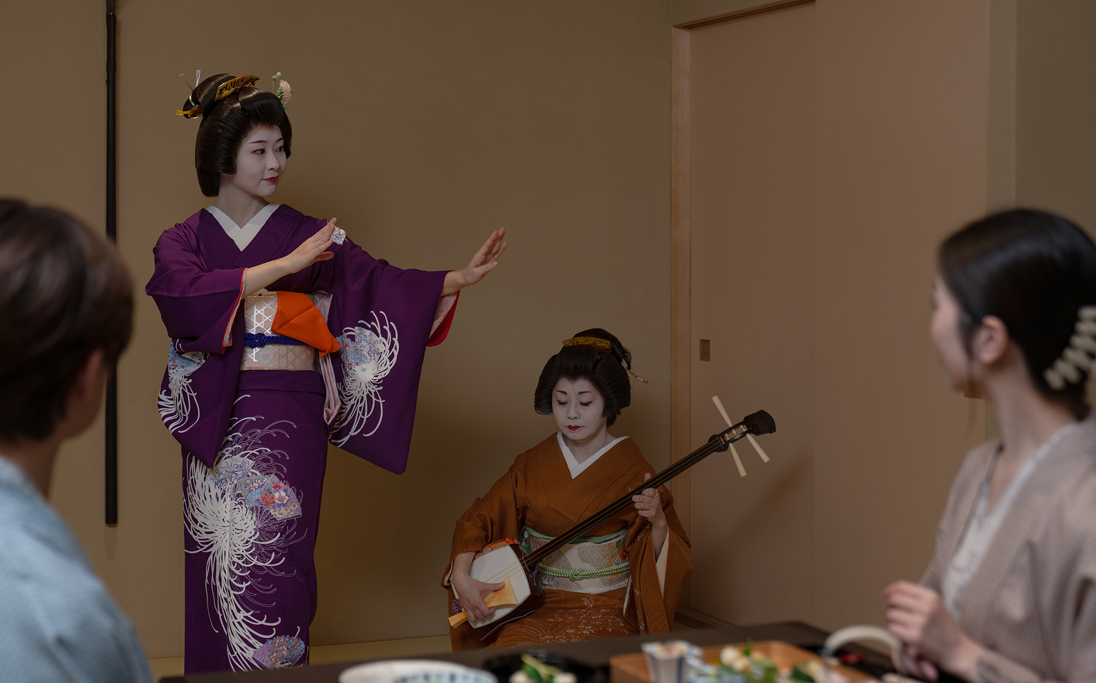 저녁은 게이코의 우아한 춤과 함께 시작됩니다.