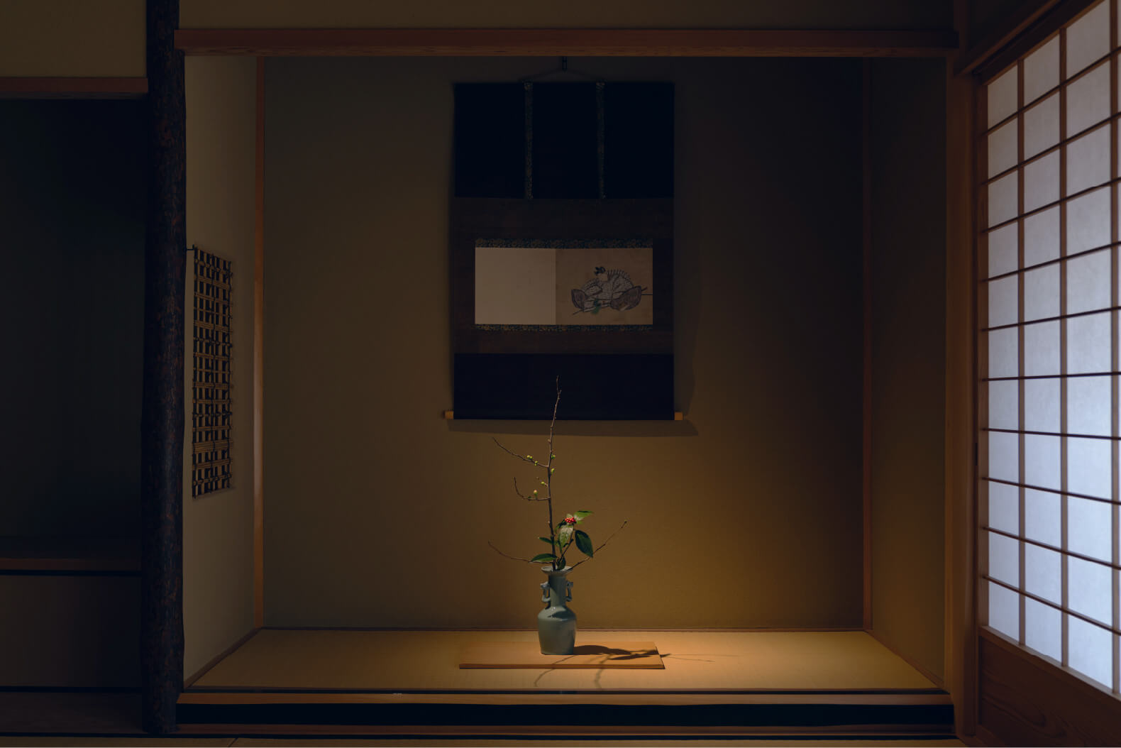 和室设有带树皮的赤松柱与聚乐壁,充满韵味。栗木刨面处理的宽缘可静享风景,是放松的理想之地。精心打造的床之间适合悬挂画轴与插花,尽显格调与品位。